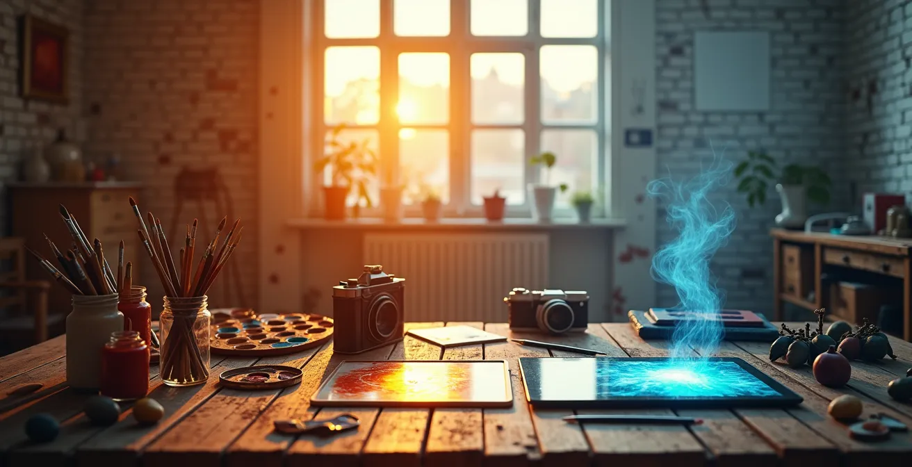 Pour comprendre cette dynamique complexe entre l’outil et la vision, cet article explore les grandes ruptures technologiques et conceptuelles qui ont façonné l’histoire de l’art. Le sommaire ci-dessous vous guidera à travers ces moments clés.